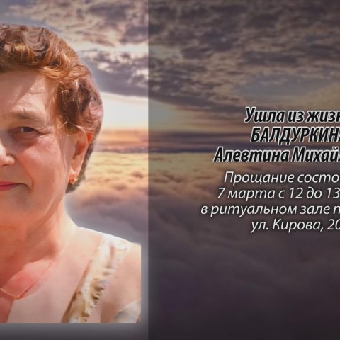 Ушла из жизни БАЛДУРКИНА Алевтина Михайловна.